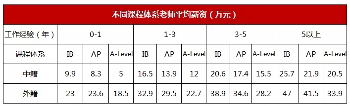 上圖中,很容易就能看出,在同等教學(xué)經(jīng)驗(yàn)的情況下,老師的薪資水平“食物鏈”是IB >AP >A-Level。