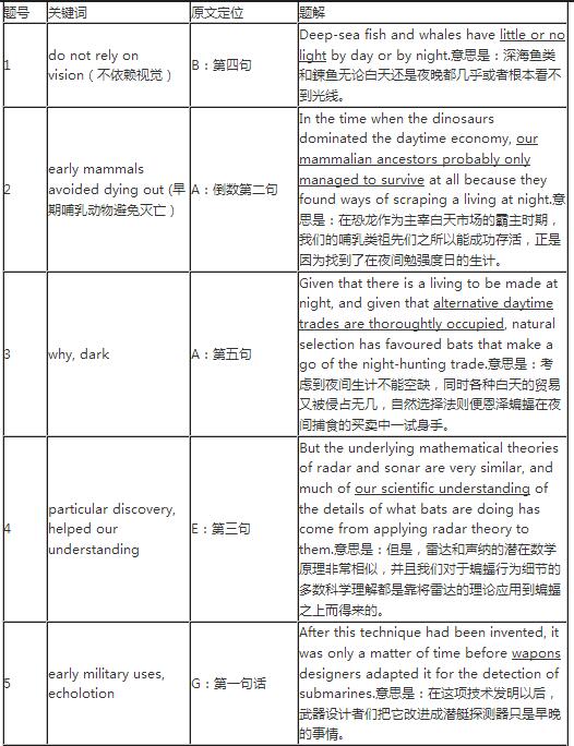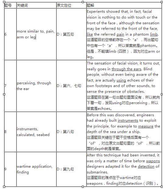 總結(jié):本題型屬于段落配信息題目。首先要通讀全部題目,劃出定位詞。這種題型一般放在整篇最后做比較好,在細(xì)節(jié)題做完對(duì)文章已經(jīng)有了一定的熟悉之后再來把握整體會(huì)更快。