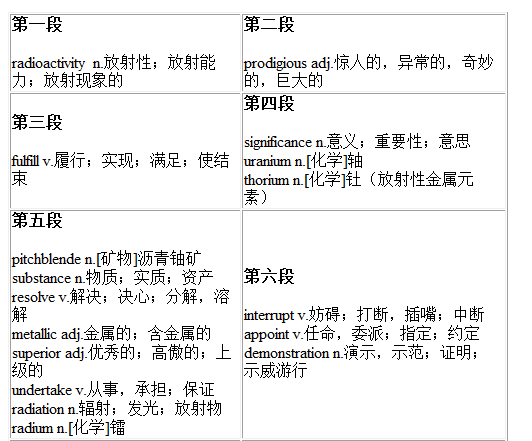 解析:在這個復合句中,主句是she found her interest drawn to pitchblende,后面的a mineral和pitchblende是同位語關系,mineral后面又出現定語從句whose radioactivity ... could be explained ...,中間的superior to that of pure uranium 是定語從句的插入成分。