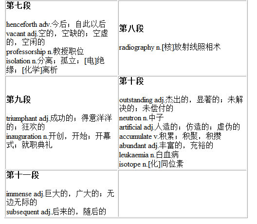 第十段 講述瑪麗在鐳方面所取得的成果為后人研究做的鋪墊以及她的去世