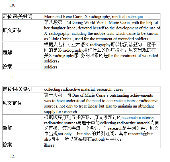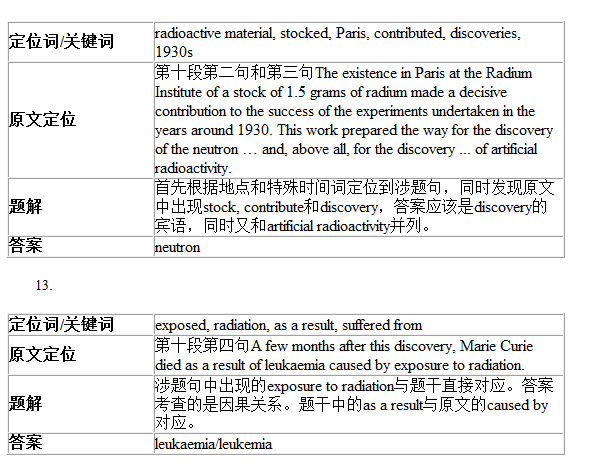 Question 7—13:thorium、pitchblende、radium、soldiers、illness、neutron、leukaemia/leukemia