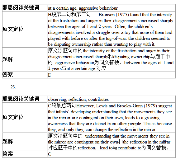 解析:人名理論配對題的特點是亂序和同義替換。首先,根據(jù)人名去原文中定位,找到其提出的理論(大多數(shù)在賓語從句中),然后判斷哪些理論與題目中的理論形成同義替換,從而進(jìn)行配對。