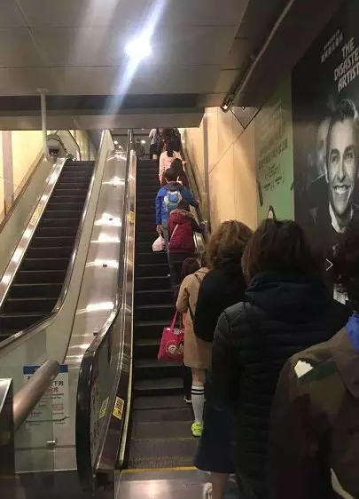 ▼所有行人靠右站立