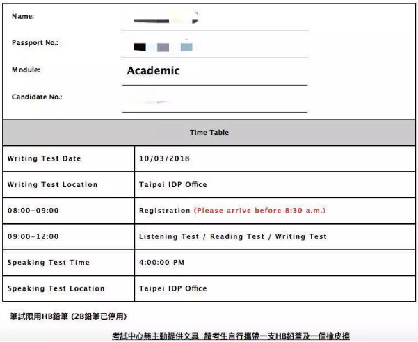 考試開始三天前會收到IDP官方郵箱發來的通知,上面有一些信息大概是這樣的: