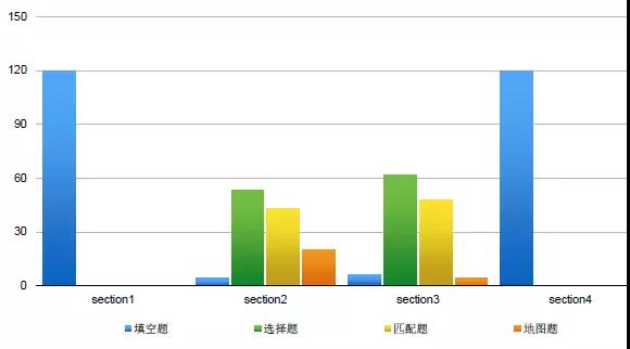 根據以上內容,我們看到4個題型的出題數量:填空>選擇>匹配>地圖