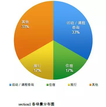 一般來說,section1場景分為住宿、旅行、工作、活動/課程咨詢四大場景。