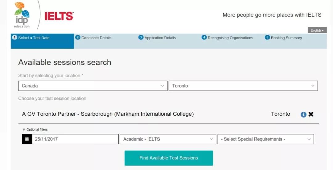 進入頁面可以了解時間、場地,選擇離你比較近的考場。每個考場場次不一定一致,像多倫多Downtown這樣比較中心的地方場次會相對較多。