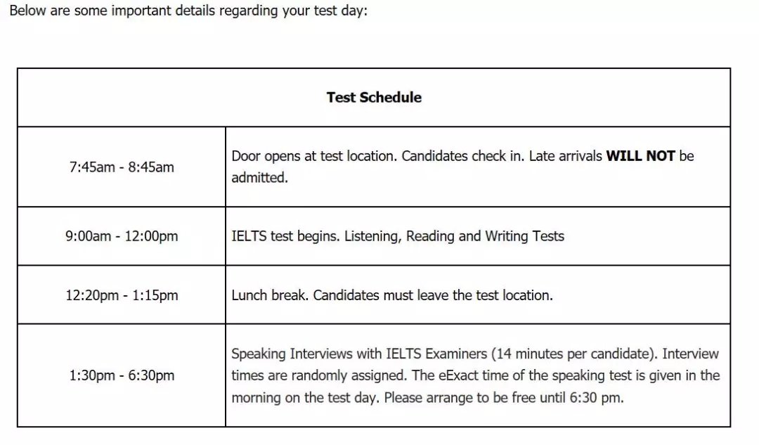 *和國內的考試不同,口語沒有預約,而是在筆試前四天郵件通知你。(本人是6月24日考,查看郵件時間是6月20日)