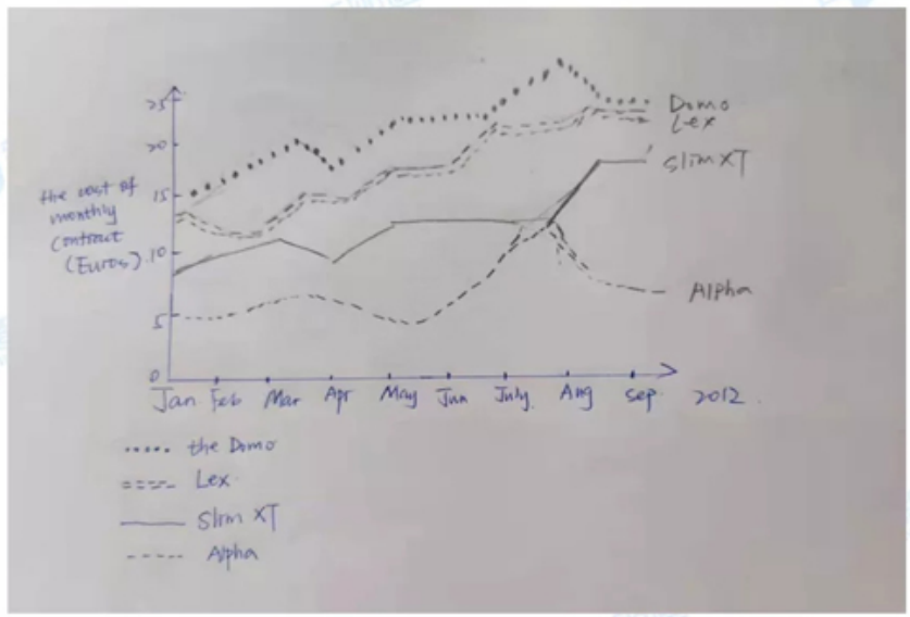 The graph shows the average cost of monthly mobile phone contracts in a European country from January to September in 2012.
