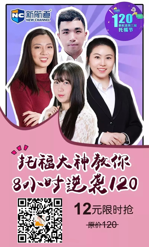 2016年1月20日,為了造福廣大托福考生,新航道創(chuàng)辦首屆中國托福節(jié)。120分為新托福滿分,日期定在1月20日,寓意著廣大托福考生都能獲得高能高分!