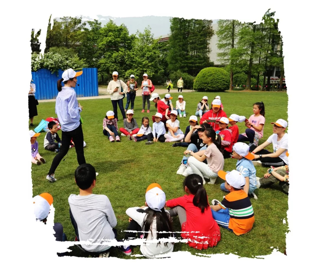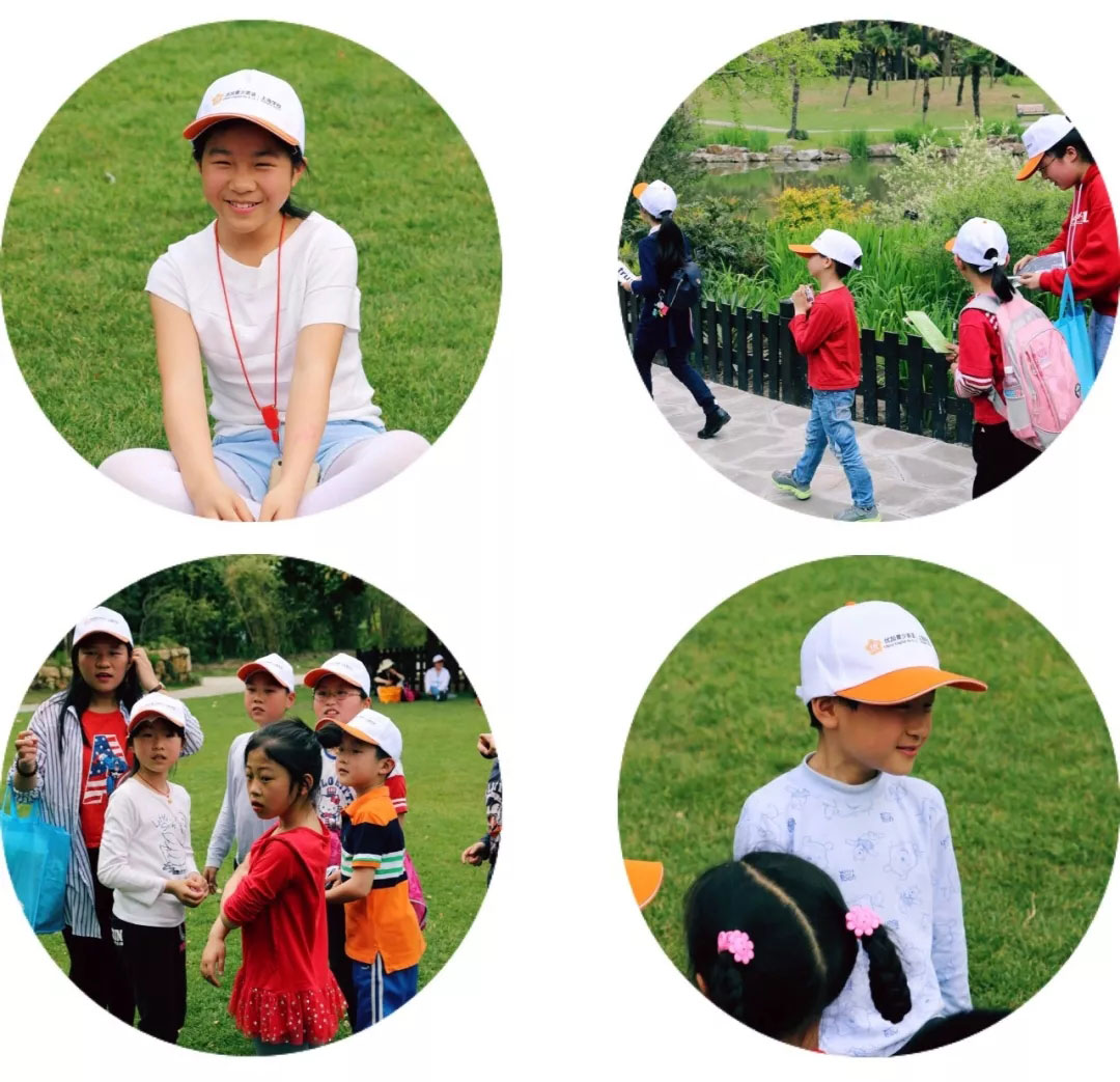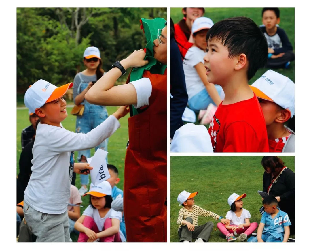 孩子們在大草坪分成了5個小組,每組由專門的英語老師帶著,相互認識,并取隊名。