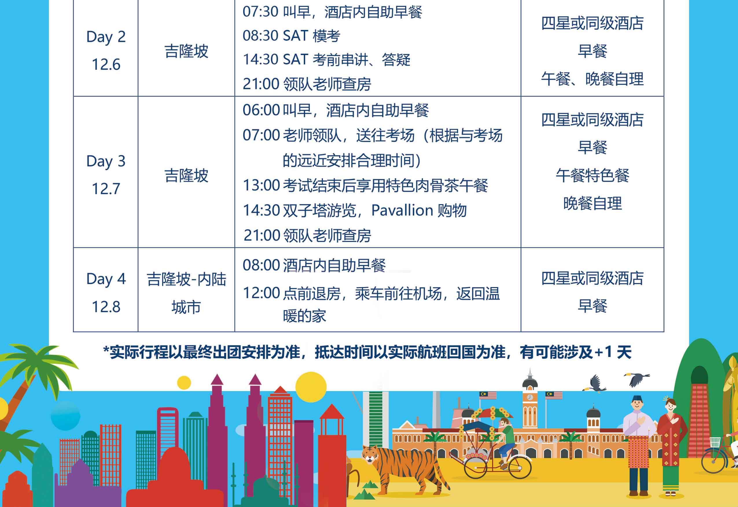 摘要:今天主要針對 2019年12月07日馬來西亞吉隆坡-SAT考試4天團的考試行程及介紹 內容如下;
