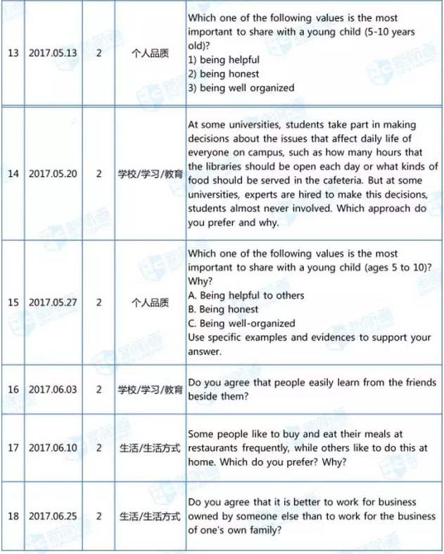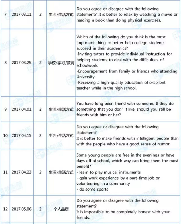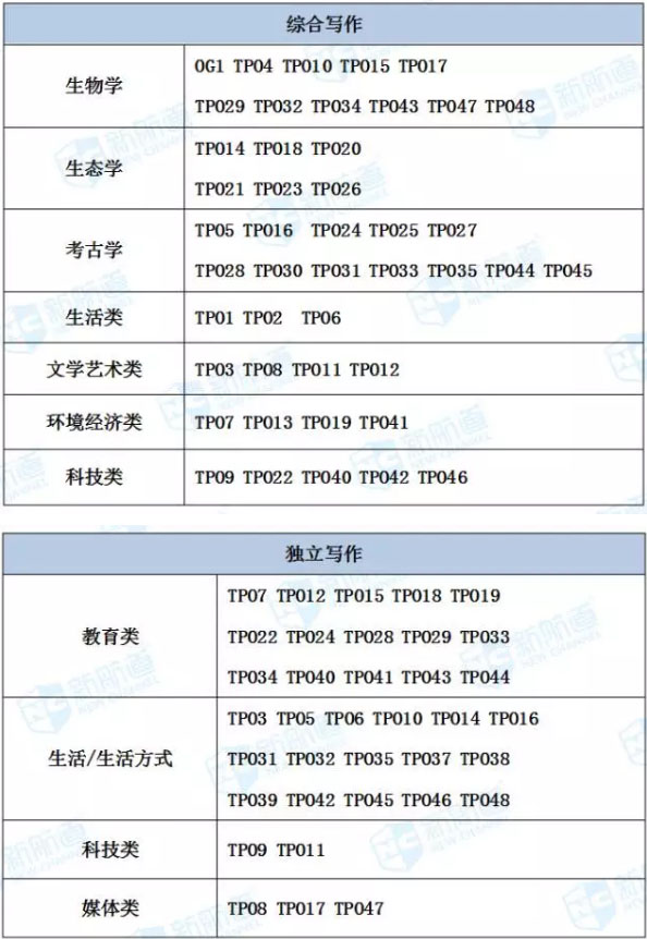 現將獨立寫作和綜合寫作話題分類如下,結合2017年上半年的考試規律,重點推薦各位考生認真練習獨立寫作前2類的題目和綜合寫作前3類TPO的文章: